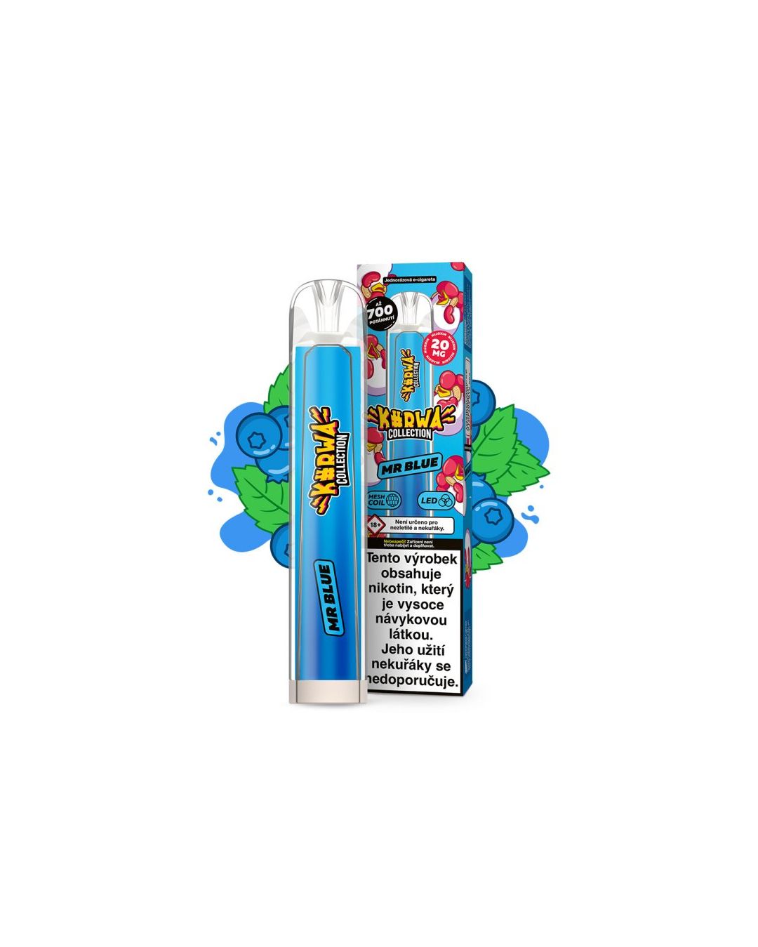 E-cigareta KURWA COLLECTION Mr Blue představuje s legendární chutí mentolově ledových borůvek. Toto jednorázové zařízení umožňuje jednoduché vapování díky aktivaci potáhnutím, bez potřeby jakéhokoli doplňování nebo nabíjení.