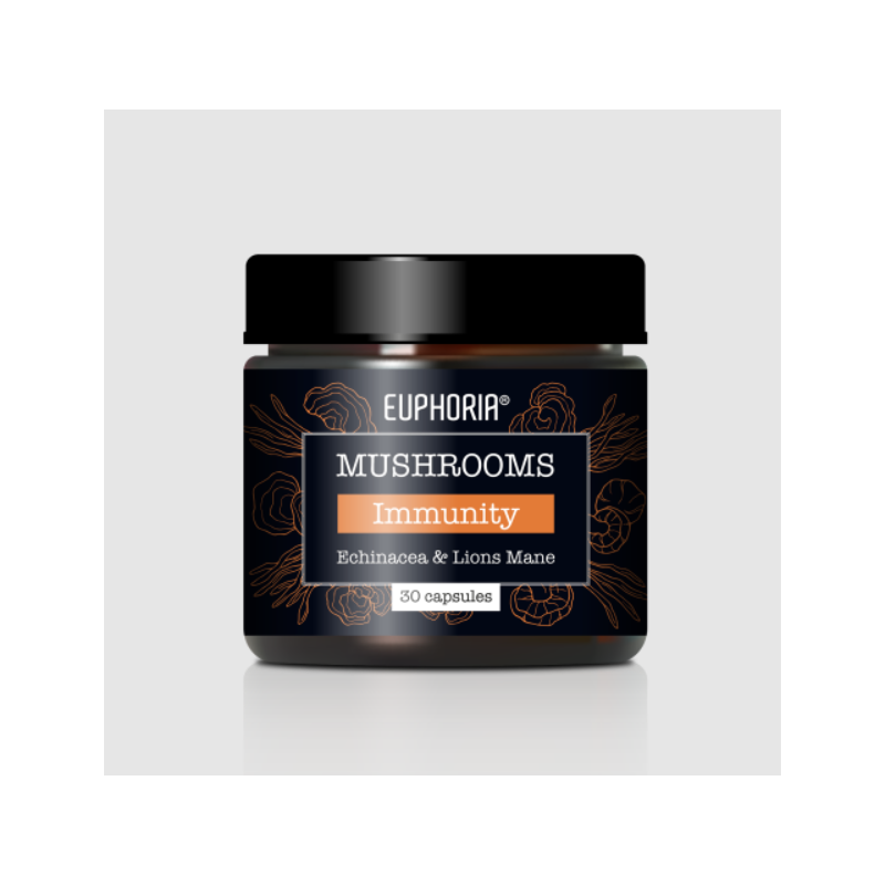 Euphoria Mushrooms Immunity ist ein Nahrungsergänzungsmittel zur natürlichen Unterstützung des Immunsystems. Es enthält eine Kombination aus funktionellen Pilzen und Kräutern, die helfen, die Immunität und die allgemeine Vitalität zu stärken und die Widerstandsfähigkeit des Körpers in schwierigen Zeiten zu verbessern.