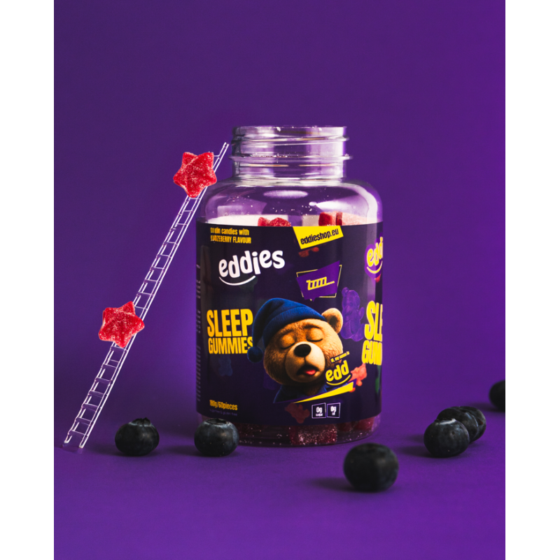 Eddies Sleep Gummies son un suplemento dietético natural con melatonina y vitamina B6, diseñado para promover el sueño y una mejor recuperación. Sin azúcar, con un sutil sabor a arándanos - el ritual nocturno perfecto para un descanso reparador.