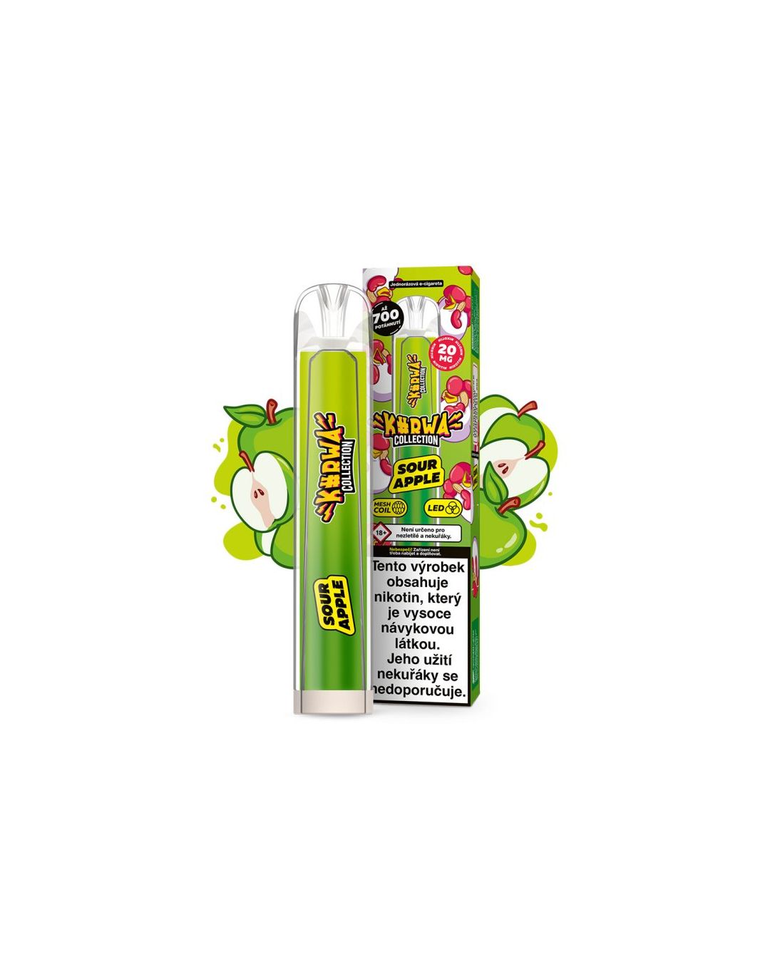 L'e-cigarette KURWA COLLECTION SOUR APPLE est dotée d'un goût aigre intense de pommes vertes. Conçu pour un vapotage instantané, ce dispositif jetable est activé par une simple traction, éliminant ainsi le besoin de recharges ou de recharge.